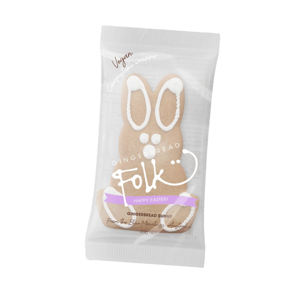 Gingerbread Folk's bunny cookie is sure to add a bit of bounce to Easter! Individually packaged in compostable wrappers and vegan, nut-free and palm-oil free, with absolutely no colours, flavours or preservatives added. Presented in counter-display units (CDU) with 24 cookies per CDU.