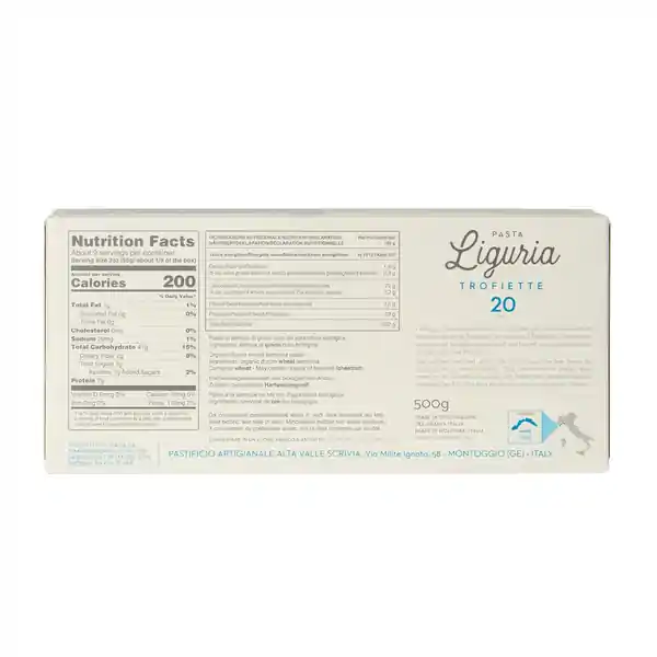 Organic Durum Wheat Semolina Pasta. Delicious with Pesto alla Genovese, blanched green beans and sliced potato as tradition dictates, this versatile pasta is also the base for many of Liguria's most famous seafood dishes.