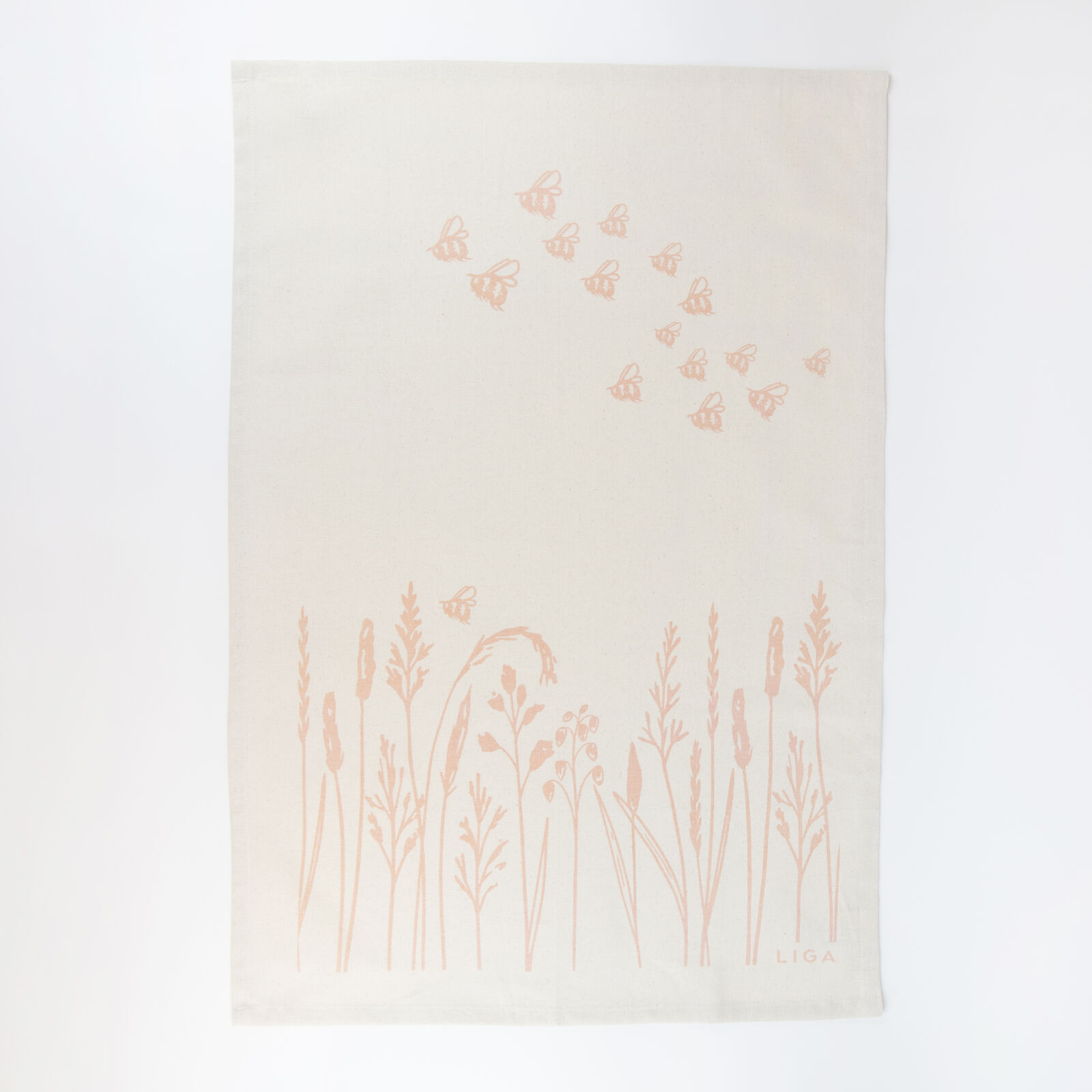 LL Organic Cotton Tea Towel - Native Grasses & Bees (1)