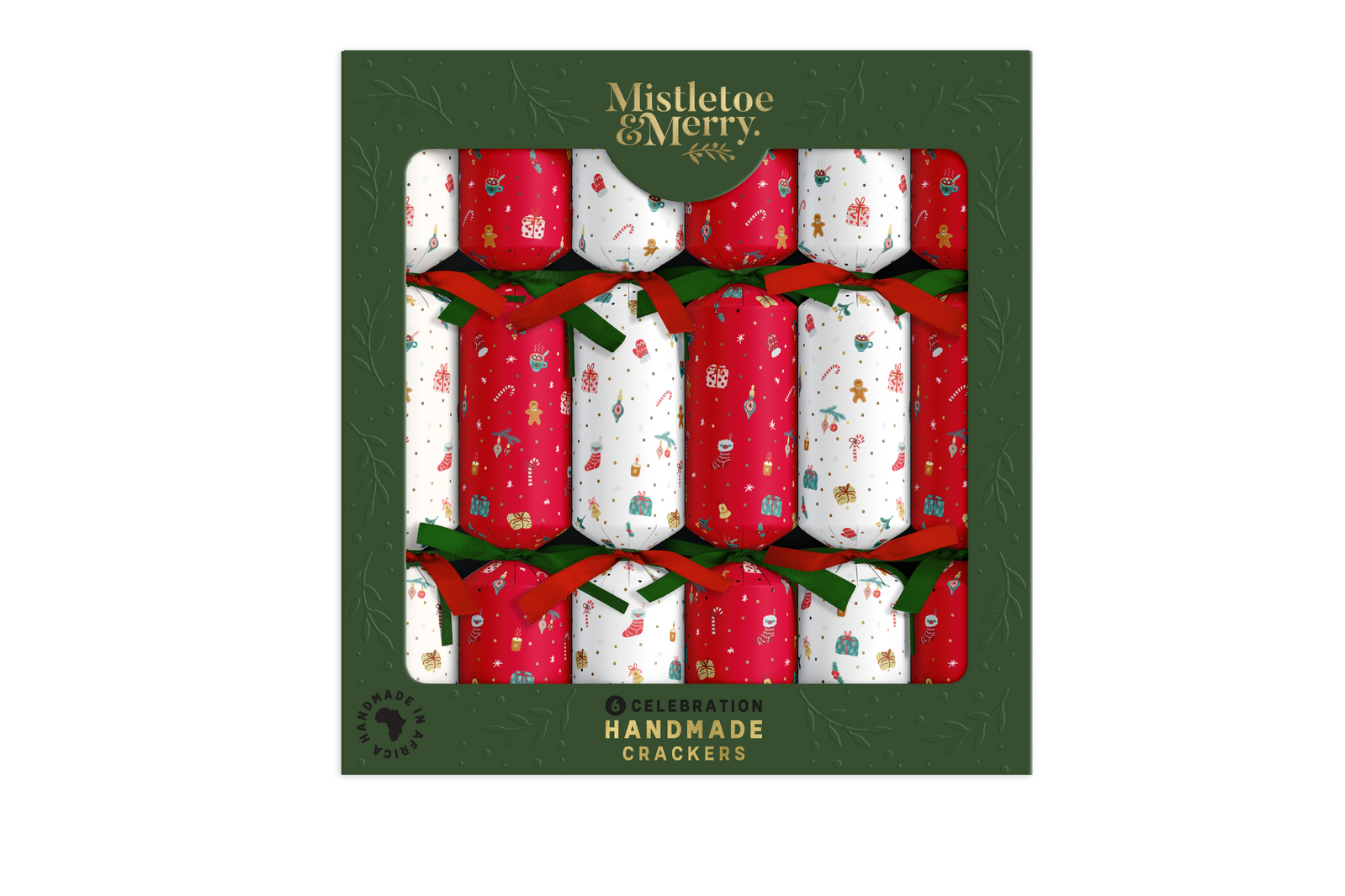 Playful illustrated festive icons make these Celebration Crackers a cheerful choice. Handmade in South Africa with quality inclusions, each cracker includes a fun gift, festive joke, paper hat and snap for relaxed festive celebrations.