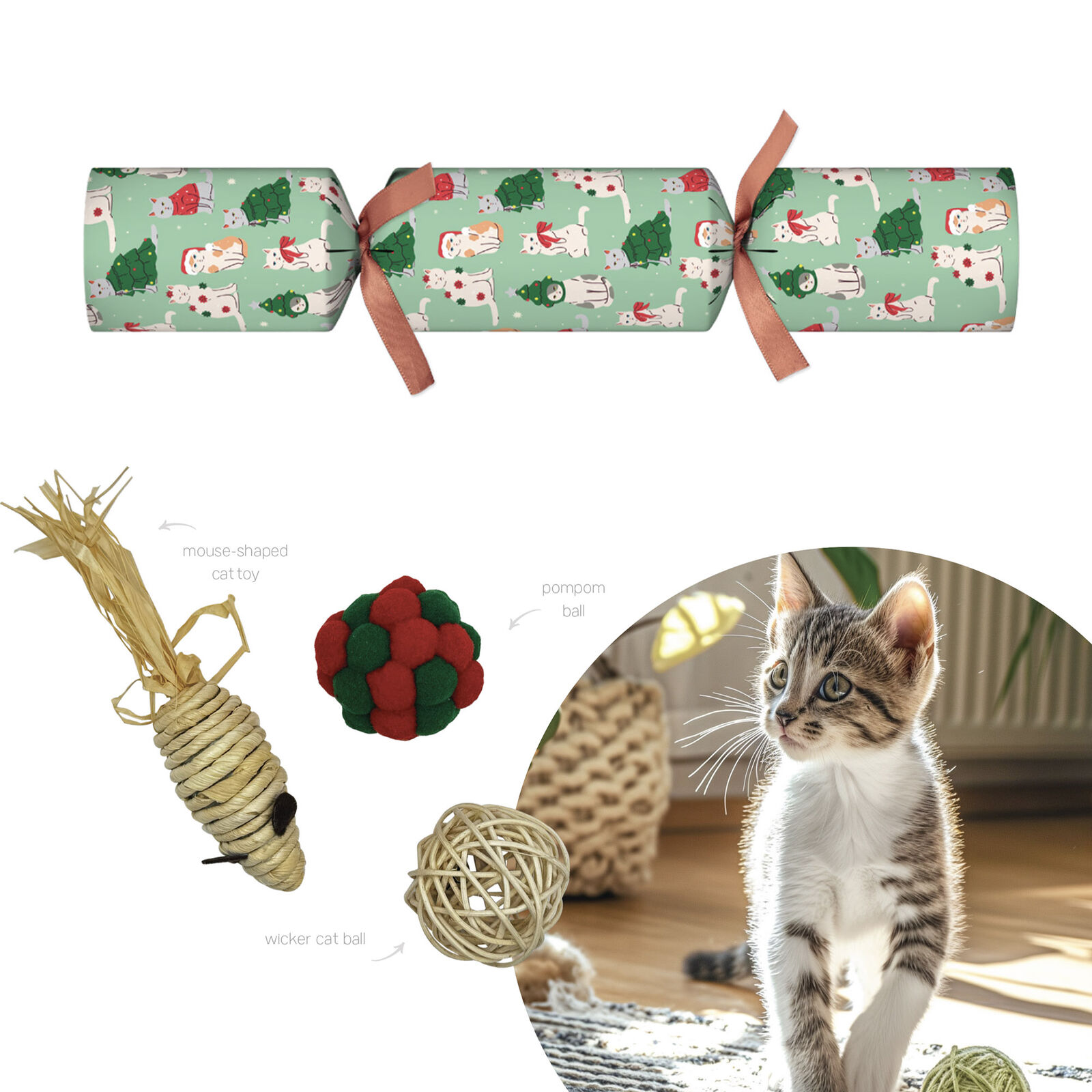 An exciting way to include your feline companion in the festive fun, these Novelty Pet Christmas Crackers are handmade in South Africa using quality materials and crafted with care. Designed especially for cats, each extra large cracker contains a fun gift for your beloved pet. A playful addition to Christmas table decoration and a memorable way to celebrate with your fur baby.