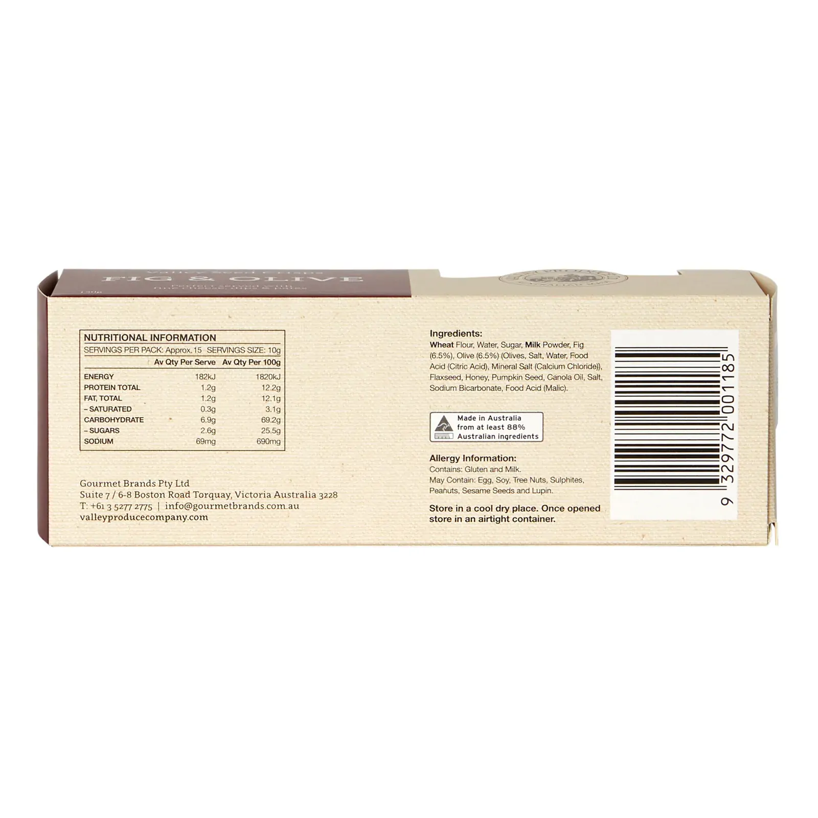 The VPC Valley Seed Crisps provide the perfect combination of figs & olives provide a savoury taste sensation of sweet and salty, Perfect with fine brie, blue or cheddar cheese.