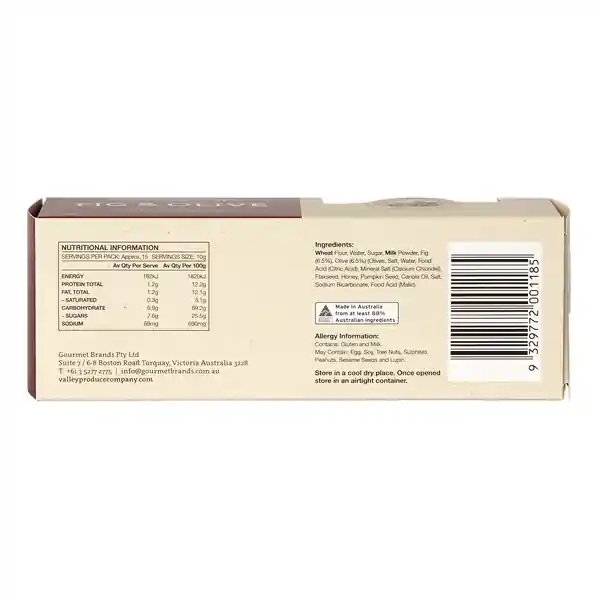 | Product Name | Valley Seed Crisps Fig & Olive 150g (12) |